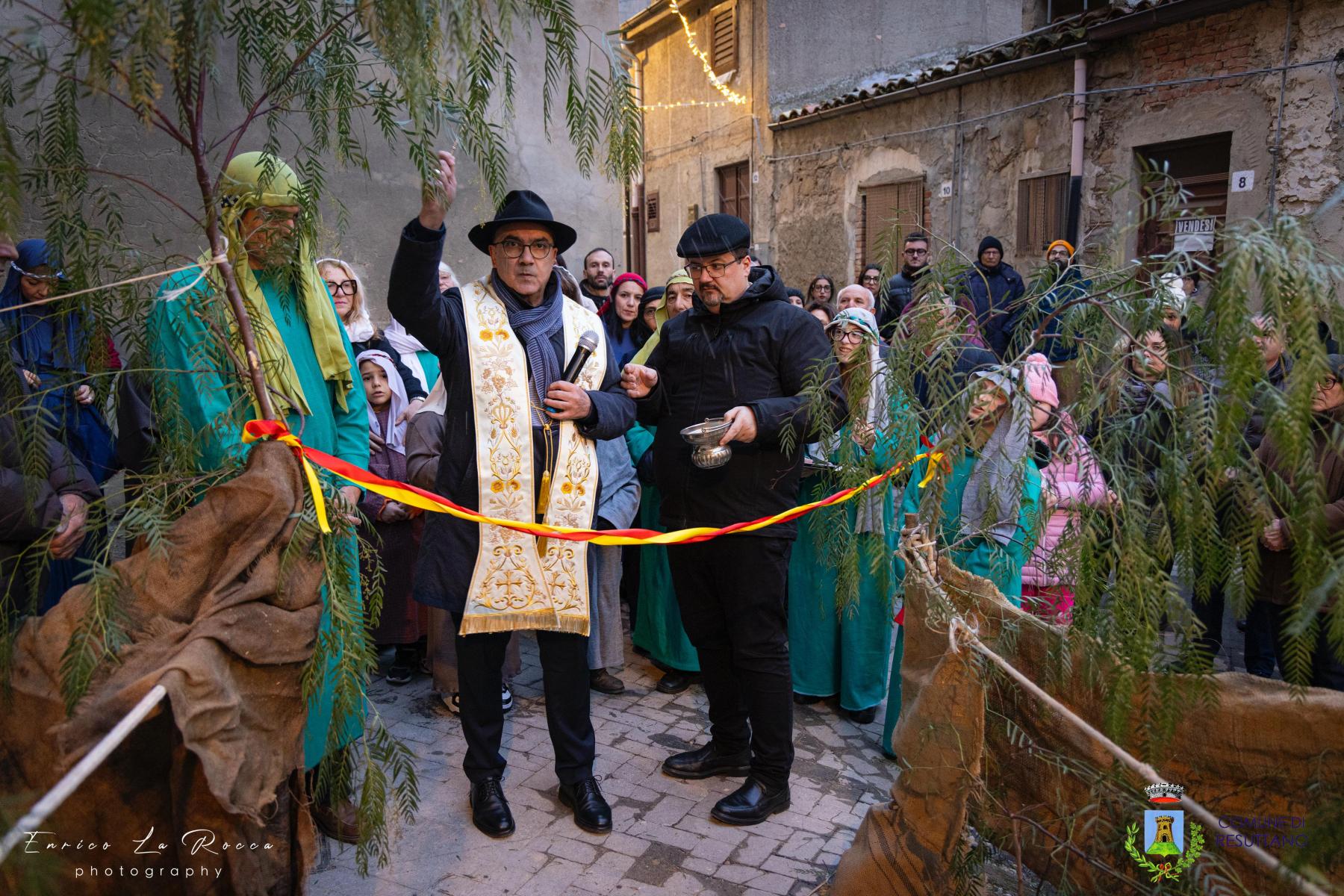 Resuttano (CL) – Si è ufficialmente aperta la venticinquesima edizione del Presepe Vivente di Resuttano, un appuntamento unico che ogni anno richiama migliaia di visitatori da tutta la Sicilia e non solo. A presiedere la cerimonia inaugurale, lo scorso weekend, è stato l’arciprete e parroco don Ignazio Carrubba, che ha fatto gli onori di casa accompagnato dal Vescovo di Ragusa, Mons. Giuseppe La Placa (originario di Resuttano), e dal sindaco della cittadina, Rosario Carapezza.